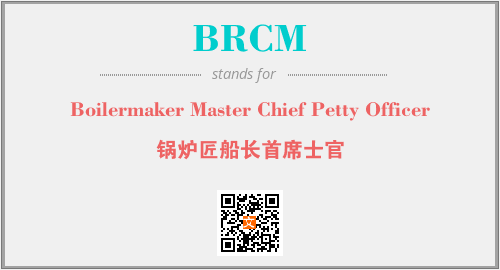 英文缩略词“BRCM”经常作为“Boilermaker Master Chief Petty Officer”的英文缩写来使用,中文表示:“锅炉匠船长首席士官”。本文将详细介绍英文缩写词BRCM所代表英文单词,其对应的中文拼音、详细解释以及在英语中的流行度。此外,还有关于缩略词BRCM的分类、应用领域及相关应用示例等。