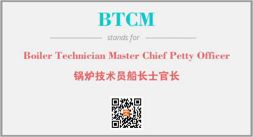 上述内容是“Boiler Technician Master Chief Petty Officer”作为“BTCM”的缩写,解释为“锅炉技术员船长士官长”时的信息,以及英文缩略词BTCM所代表的英文单词,其对应的中文拼音、详细解释以及在英文中的流行度和相关分类、应用领域及应用示例等。