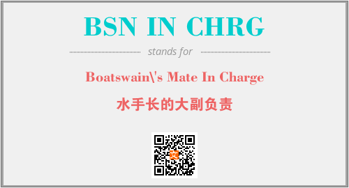英文缩略词“BSN IN CHRG”经常作为“Boatswain\'s Mate In Charge”的英文缩写来使用,中文表示:“水手长的大副负责”。本文将详细介绍英文缩写词BSN IN CHRG所代表英文单词,其对应的中文拼音、详细解释以及在英语中的流行度。此外,还有关于缩略词BSN IN CHRG的分类、应用领域及相关应用示例等。