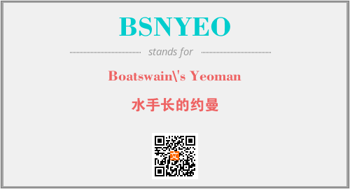 英文缩略词“BSNYEO”经常作为“Boatswain\'s Yeoman”的英文缩写来使用,中文表示:“水手长的约曼”。本文将详细介绍英文缩写词BSNYEO所代表英文单词,其对应的中文拼音、详细解释以及在英语中的流行度。此外,还有关于缩略词BSNYEO的分类、应用领域及相关应用示例等。