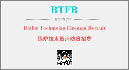 上述内容是“Boiler Technician Fireman Recruit”作为“BTFR”的缩写,解释为“锅炉技术员消防员招募”时的信息,以及英文缩略词BTFR所代表的英文单词,其对应的中文拼音、详细解释以及在英文中的流行度和相关分类、应用领域及应用示例等。