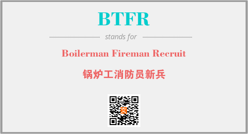 英文缩略词“BTFR”经常作为“Boilerman Fireman Recruit”的英文缩写来使用,中文表示:“锅炉工消防员新兵”。本文将详细介绍英文缩写词BTFR所代表英文单词,其对应的中文拼音、详细解释以及在英语中的流行度。此外,还有关于缩略词BTFR的分类、应用领域及相关应用示例等。