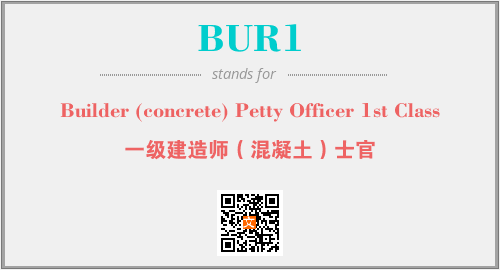 上述内容是“Builder (concrete) Petty Officer 1st Class”作为“BUR1”的缩写,解释为“一级建造师(混凝土)士官”时的信息,以及英文缩略词BUR1所代表的英文单词,其对应的中文拼音、详细解释以及在英文中的流行度和相关分类、应用领域及应用示例等。