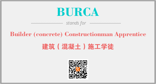 上述内容是“Builder (concrete) Constructionman Apprentice”作为“BURCA”的缩写,解释为“建筑(混凝土)施工学徒”时的信息,以及英文缩略词BURCA所代表的英文单词,其对应的中文拼音、详细解释以及在英文中的流行度和相关分类、应用领域及应用示例等。