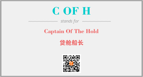 英文缩略词“C OF H”经常作为“Captain Of The Hold”的英文缩写来使用,中文表示:“货舱船长”。本文将详细介绍英文缩写词C OF H所代表英文单词,其对应的中文拼音、详细解释以及在英语中的流行度。此外,还有关于缩略词C OF H的分类、应用领域及相关应用示例等。