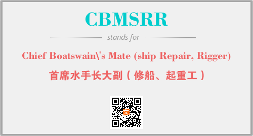 以上为Chief Boatswain\'s Mate (ship Repair, Rigger)英文缩略词CBMSRR的中文解释,以及该英文缩写在英语的流行度、分类和应用领域方面的信息。