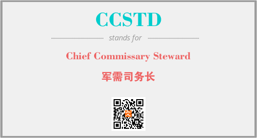 英文缩略词“CCSTD”经常作为“Chief Commissary Steward”的英文缩写来使用,中文表示:“军需司务长”。本文将详细介绍英文缩写词CCSTD所代表英文单词,其对应的中文拼音、详细解释以及在英语中的流行度。此外,还有关于缩略词CCSTD的分类、应用领域及相关应用示例等。