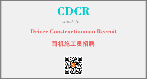 上述内容是“Driver Constructionman Recruit”作为“CDCR”的缩写,解释为“司机施工员招聘”时的信息,以及英文缩略词CDCR所代表的英文单词,其对应的中文拼音、详细解释以及在英文中的流行度和相关分类、应用领域及应用示例等。