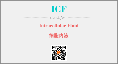 英文缩略词“ICF”经常作为“Intracellular Fluid”的英文缩写来使用,中文表示:“细胞内液”。本文将详细介绍英文缩写词ICF所代表英文单词,其对应的中文拼音、详细解释以及在英语中的流行度。此外,还有关于缩略词ICF的分类、应用领域及相关应用示例等。