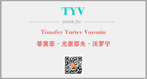 上述内容是“Timofey Yuriev Voronin”作为“TYV”的缩写,解释为“蒂莫菲·尤里耶夫·沃罗宁”时的信息,以及英文缩略词TYV所代表的英文单词,其对应的中文拼音、详细解释以及在英文中的流行度和相关分类、应用领域及应用示例等。