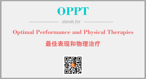 以上为Optimal Performance and Physical Therapies英文缩略词OPPT的中文解释,以及该英文缩写在英语的流行度、分类和应用领域方面的信息。