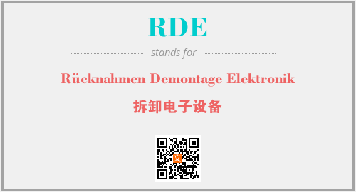 英文缩略词“RDE”经常作为“Rücknahmen Demontage Elektronik”的英文缩写来使用,中文表示:“拆卸电子设备”。本文将详细介绍英文缩写词RDE所代表英文单词,其对应的中文拼音、详细解释以及在英语中的流行度。此外,还有关于缩略词RDE的分类、应用领域及相关应用示例等。