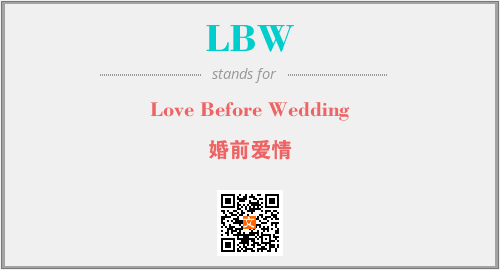 以上为Love Before Wedding英文缩略词LBW的中文解释,以及该英文缩写在英语的流行度、分类和应用领域方面的信息。