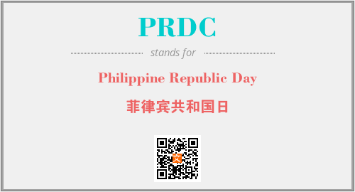 上述内容是“Philippine Republic Day”作为“PRDC”的缩写,解释为“菲律宾共和国日”时的信息,以及英文缩略词PRDC所代表的英文单词,其对应的中文拼音、详细解释以及在英文中的流行度和相关分类、应用领域及应用示例等。