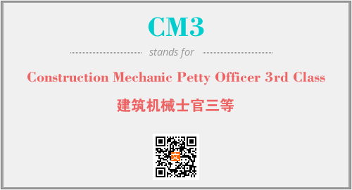 英文缩略词“CM3”经常作为“Construction Mechanic Petty Officer 3rd Class”的英文缩写来使用,中文表示:“建筑机械士官三等”。本文将详细介绍英文缩写词CM3所代表英文单词,其对应的中文拼音、详细解释以及在英语中的流行度。此外,还有关于缩略词CM3的分类、应用领域及相关应用示例等。