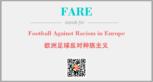 上述内容是“Football Against Racism in Europe”作为“FARE”的缩写,解释为“欧洲足球反对种族主义”时的信息,以及英文缩略词FARE所代表的英文单词,其对应的中文拼音、详细解释以及在英文中的流行度和相关分类、应用领域及应用示例等。