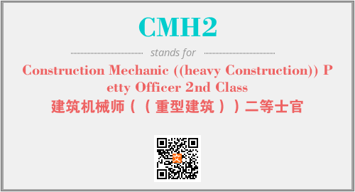 英文缩略词“CMH2”经常作为“Construction Mechanic ((heavy Construction)) Petty Officer 2nd Class”的英文缩写来使用,中文表示:“建筑机械师((重型建筑))二等士官”。本文将详细介绍英文缩写词CMH2所代表英文单词,其对应的中文拼音、详细解释以及在英语中的流行度。此外,还有关于缩略词CMH2的分类、应用领域及相关应用示例等。