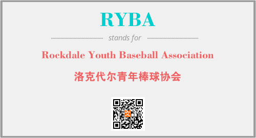 英文缩略词“RYBA”经常作为“Rockdale Youth Baseball Association”的英文缩写来使用,中文表示:“洛克代尔青年棒球协会”。本文将详细介绍英文缩写词RYBA所代表英文单词,其对应的中文拼音、详细解释以及在英语中的流行度。此外,还有关于缩略词RYBA的分类、应用领域及相关应用示例等。