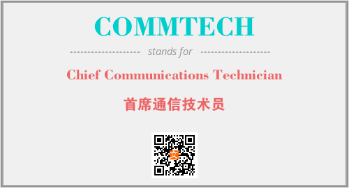 英文缩略词“COMMTECH”经常作为“Chief Communications Technician”的英文缩写来使用,中文表示:“首席通信技术员”。本文将详细介绍英文缩写词COMMTECH所代表英文单词,其对应的中文拼音、详细解释以及在英语中的流行度。此外,还有关于缩略词COMMTECH的分类、应用领域及相关应用示例等。