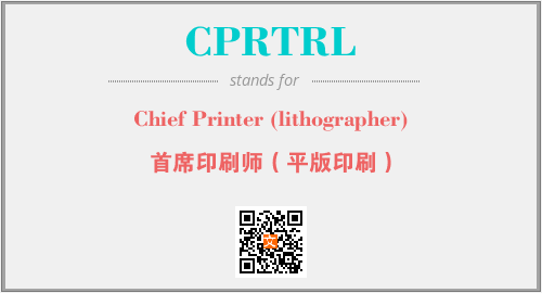 英文缩略词“CPRTRL”经常作为“Chief Printer (lithographer)”的英文缩写来使用,中文表示:“首席印刷师(平版印刷)”。本文将详细介绍英文缩写词CPRTRL所代表英文单词,其对应的中文拼音、详细解释以及在英语中的流行度。此外,还有关于缩略词CPRTRL的分类、应用领域及相关应用示例等。