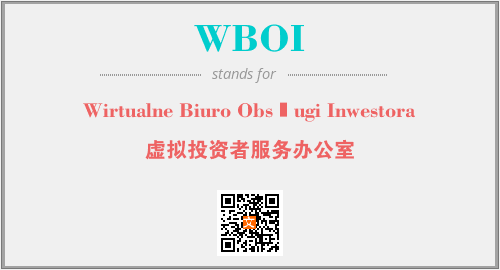 上述内容是“Wirtualne Biuro Obsługi Inwestora”作为“WBOI”的缩写,解释为“虚拟投资者服务办公室”时的信息,以及英文缩略词WBOI所代表的英文单词,其对应的中文拼音、详细解释以及在英文中的流行度和相关分类、应用领域及应用示例等。