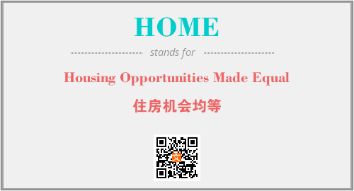 英文缩略词“HOME”经常作为“Housing Opportunities Made Equal”的英文缩写来使用,中文表示:“住房机会均等”。本文将详细介绍英文缩写词HOME所代表英文单词,其对应的中文拼音、详细解释以及在英语中的流行度。此外,还有关于缩略词HOME的分类、应用领域及相关应用示例等。