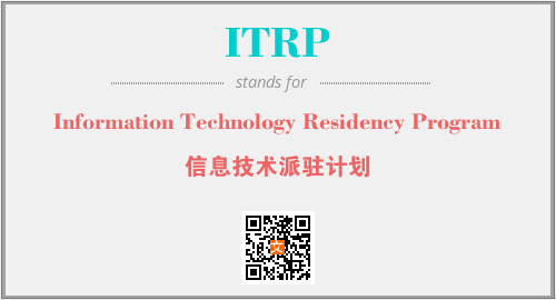 上述内容是“Information Technology Residency Program”作为“ITRP”的缩写,解释为“信息技术派驻计划”时的信息,以及英文缩略词ITRP所代表的英文单词,其对应的中文拼音、详细解释以及在英文中的流行度和相关分类、应用领域及应用示例等。