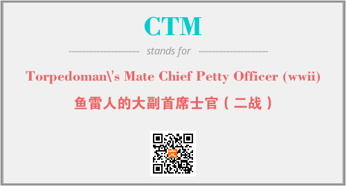 英文缩略词“CTM”经常作为“Torpedoman\'s Mate Chief Petty Officer (wwii)”的英文缩写来使用,中文表示:“鱼雷人的大副首席士官(二战)”。本文将详细介绍英文缩写词CTM所代表英文单词,其对应的中文拼音、详细解释以及在英语中的流行度。此外,还有关于缩略词CTM的分类、应用领域及相关应用示例等。
