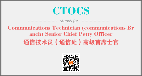 英文缩略词“CTOCS”经常作为“Communications Technician (communications Branch) Senior Chief Petty Officer”的英文缩写来使用,中文表示:“通信技术员(通信处)高级首席士官”。本文将详细介绍英文缩写词CTOCS所代表英文单词,其对应的中文拼音、详细解释以及在英语中的流行度。此外,还有关于缩略词CTOCS的分类、应用领域及相关应用示例等。