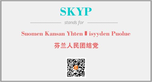英文缩略词“SKYP”经常作为“Suomen Kansan Yhtenäisyyden Puolue”的英文缩写来使用,中文表示:“芬兰人民团结党”。本文将详细介绍英文缩写词SKYP所代表英文单词,其对应的中文拼音、详细解释以及在英语中的流行度。此外,还有关于缩略词SKYP的分类、应用领域及相关应用示例等。