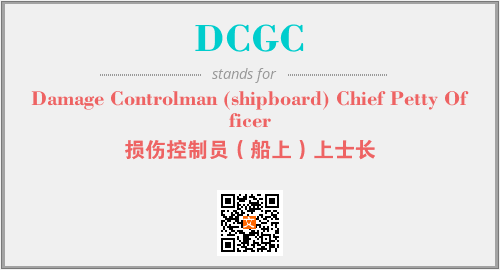 上述内容是“Damage Controlman (shipboard) Chief Petty Officer”作为“DCGC”的缩写,解释为“损伤控制员(船上)上士长”时的信息,以及英文缩略词DCGC所代表的英文单词,其对应的中文拼音、详细解释以及在英文中的流行度和相关分类、应用领域及应用示例等。