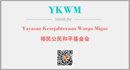 上述内容是“Yayasan Kesejahteraan Warga Migas”作为“YKWM”的缩写,解释为“移民公民和平基金会”时的信息,以及英文缩略词YKWM所代表的英文单词,其对应的中文拼音、详细解释以及在英文中的流行度和相关分类、应用领域及应用示例等。