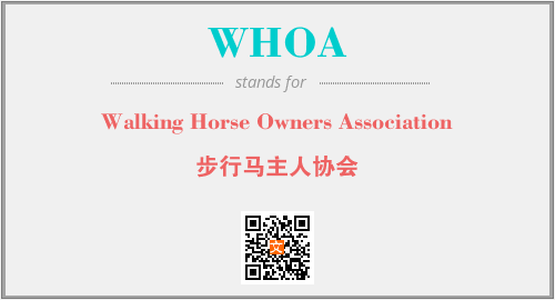 上述内容是“Walking Horse Owners Association”作为“WHOA”的缩写,解释为“步行马主人协会”时的信息,以及英文缩略词WHOA所代表的英文单词,其对应的中文拼音、详细解释以及在英文中的流行度和相关分类、应用领域及应用示例等。