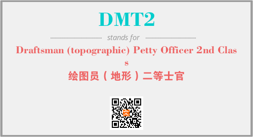 上述内容是“Draftsman (topographic) Petty Officer 2nd Class”作为“DMT2”的缩写,解释为“绘图员(地形)二等士官”时的信息,以及英文缩略词DMT2所代表的英文单词,其对应的中文拼音、详细解释以及在英文中的流行度和相关分类、应用领域及应用示例等。