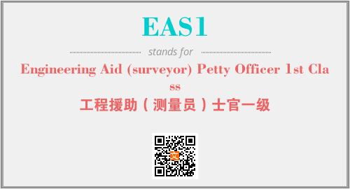 上述内容是“Engineering Aid (surveyor) Petty Officer 1st Class”作为“EAS1”的缩写,解释为“工程援助(测量员)士官一级”时的信息,以及英文缩略词EAS1所代表的英文单词,其对应的中文拼音、详细解释以及在英文中的流行度和相关分类、应用领域及应用示例等。