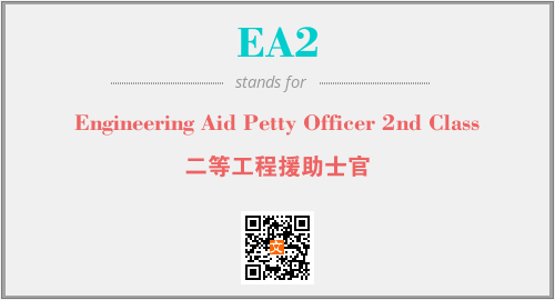 上述内容是“Engineering Aid Petty Officer 2nd Class”作为“EA2”的缩写,解释为“二等工程援助士官”时的信息,以及英文缩略词EA2所代表的英文单词,其对应的中文拼音、详细解释以及在英文中的流行度和相关分类、应用领域及应用示例等。