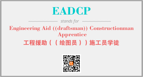 上述内容是“Engineering Aid ((draftsman)) Constructionman Apprentice”作为“EADCP”的缩写,解释为“工程援助((绘图员))施工员学徒”时的信息,以及英文缩略词EADCP所代表的英文单词,其对应的中文拼音、详细解释以及在英文中的流行度和相关分类、应用领域及应用示例等。