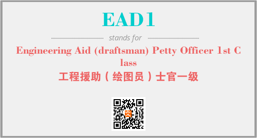 上述内容是“Engineering Aid (draftsman) Petty Officer 1st Class”作为“EAD1”的缩写,解释为“工程援助(绘图员)士官一级”时的信息,以及英文缩略词EAD1所代表的英文单词,其对应的中文拼音、详细解释以及在英文中的流行度和相关分类、应用领域及应用示例等。