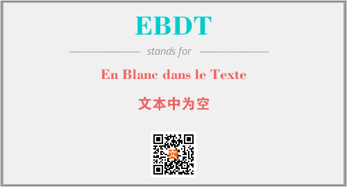 上述内容是“En Blanc dans le Texte”作为“EBDT”的缩写,解释为“文本中为空”时的信息,以及英文缩略词EBDT所代表的英文单词,其对应的中文拼音、详细解释以及在英文中的流行度和相关分类、应用领域及应用示例等。