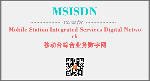英文缩略词“MSISDN”经常作为“Mobile Station Integrated Services Digital Network”的英文缩写来使用,中文表示:“移动台综合业务数字网”。本文将详细介绍英文缩写词MSISDN所代表英文单词,其对应的中文拼音、详细解释以及在英语中的流行度。此外,还有关于缩略词MSISDN的分类、应用领域及相关应用示例等。