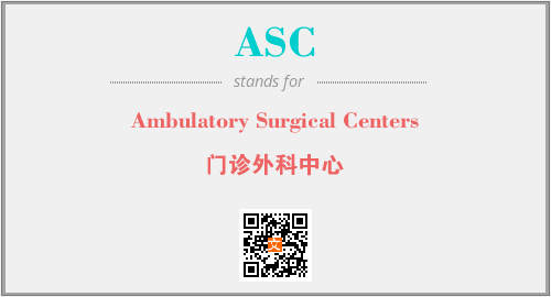 英文缩略词“ASC”经常作为“Ambulatory Surgical Centers”的英文缩写来使用,中文表示:“门诊外科中心”。本文将详细介绍英文缩写词ASC所代表英文单词,其对应的中文拼音、详细解释以及在英语中的流行度。此外,还有关于缩略词ASC的分类、应用领域及相关应用示例等。