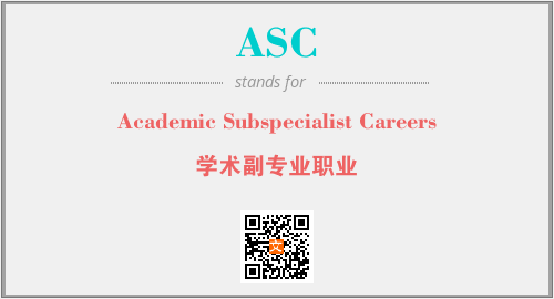 上述内容是“Academic Subspecialist Careers”作为“ASC”的缩写,解释为“学术副专业职业”时的信息,以及英文缩略词ASC所代表的英文单词,其对应的中文拼音、详细解释以及在英文中的流行度和相关分类、应用领域及应用示例等。