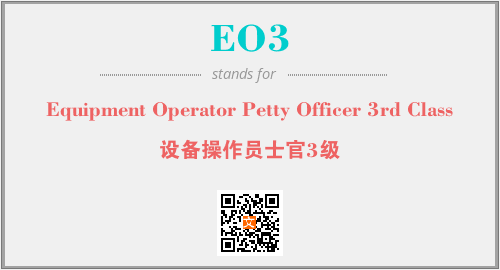 以上为Equipment Operator Petty Officer 3rd Class英文缩略词EO3的中文解释,以及该英文缩写在英语的流行度、分类和应用领域方面的信息。