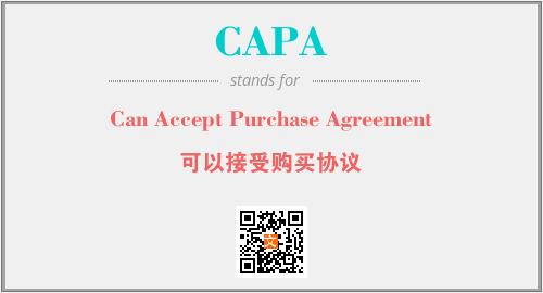 以上为Can Accept Purchase Agreement英文缩略词CAPA的中文解释,以及该英文缩写在英语的流行度、分类和应用领域方面的信息。
