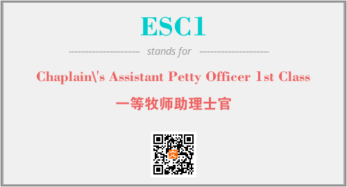 以上为Chaplain\'s Assistant Petty Officer 1st Class英文缩略词ESC1的中文解释,以及该英文缩写在英语的流行度、分类和应用领域方面的信息。
