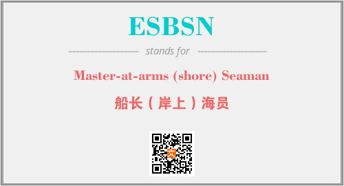 英文缩略词“ESBSN”经常作为“Master-at-arms (shore) Seaman”的英文缩写来使用,中文表示:“船长(岸上)海员”。本文将详细介绍英文缩写词ESBSN所代表英文单词,其对应的中文拼音、详细解释以及在英语中的流行度。此外,还有关于缩略词ESBSN的分类、应用领域及相关应用示例等。