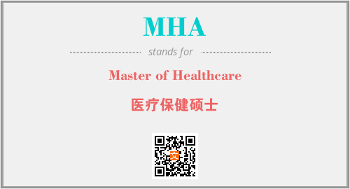 上述内容是“Master of Healthcare”作为“MHA”的缩写,解释为“医疗保健硕士”时的信息,以及英文缩略词MHA所代表的英文单词,其对应的中文拼音、详细解释以及在英文中的流行度和相关分类、应用领域及应用示例等。