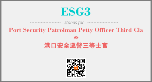 上述内容是“Port Security Patrolman Petty Officer Third Class”作为“ESG3”的缩写,解释为“港口安全巡警三等士官”时的信息,以及英文缩略词ESG3所代表的英文单词,其对应的中文拼音、详细解释以及在英文中的流行度和相关分类、应用领域及应用示例等。