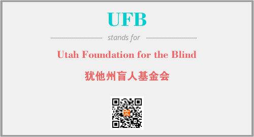 英文缩略词“UFB”经常作为“Utah Foundation for the Blind”的英文缩写来使用,中文表示:“犹他州盲人基金会”。本文将详细介绍英文缩写词UFB所代表英文单词,其对应的中文拼音、详细解释以及在英语中的流行度。此外,还有关于缩略词UFB的分类、应用领域及相关应用示例等。