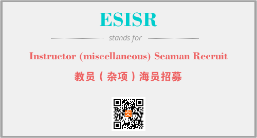 上述内容是“Instructor (miscellaneous) Seaman Recruit”作为“ESISR”的缩写,解释为“教员(杂项)海员招募”时的信息,以及英文缩略词ESISR所代表的英文单词,其对应的中文拼音、详细解释以及在英文中的流行度和相关分类、应用领域及应用示例等。
